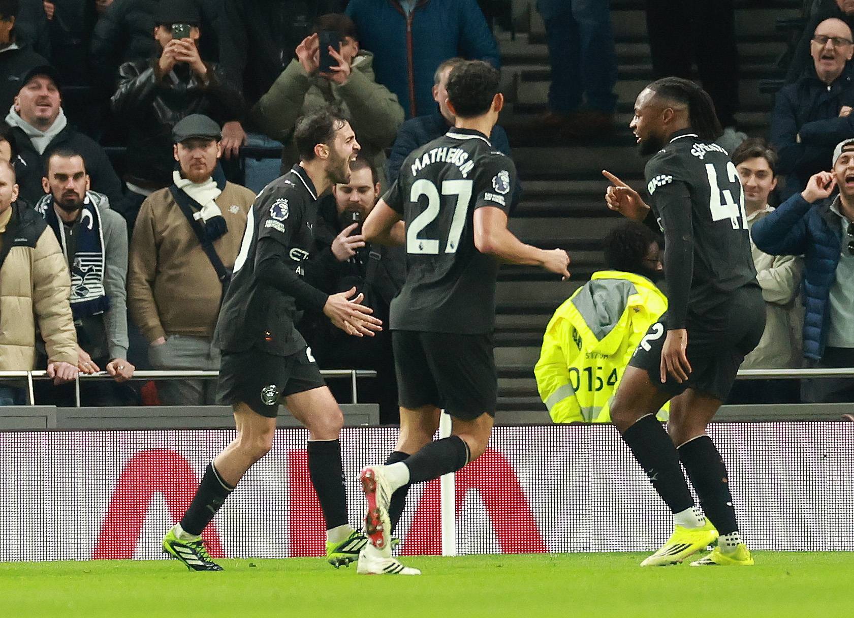当日,在伦敦进行的2025-2026英超联赛第24轮的一场比赛中,托特纳姆热刺队主场以2比2战平曼彻斯特城队。 2月1日,曼彻斯特城队主帅瓜迪奥拉在场边指挥。 新华/欧新2月1日,托特纳姆热刺队球员西蒙斯(左)与曼彻斯特城队球员席...